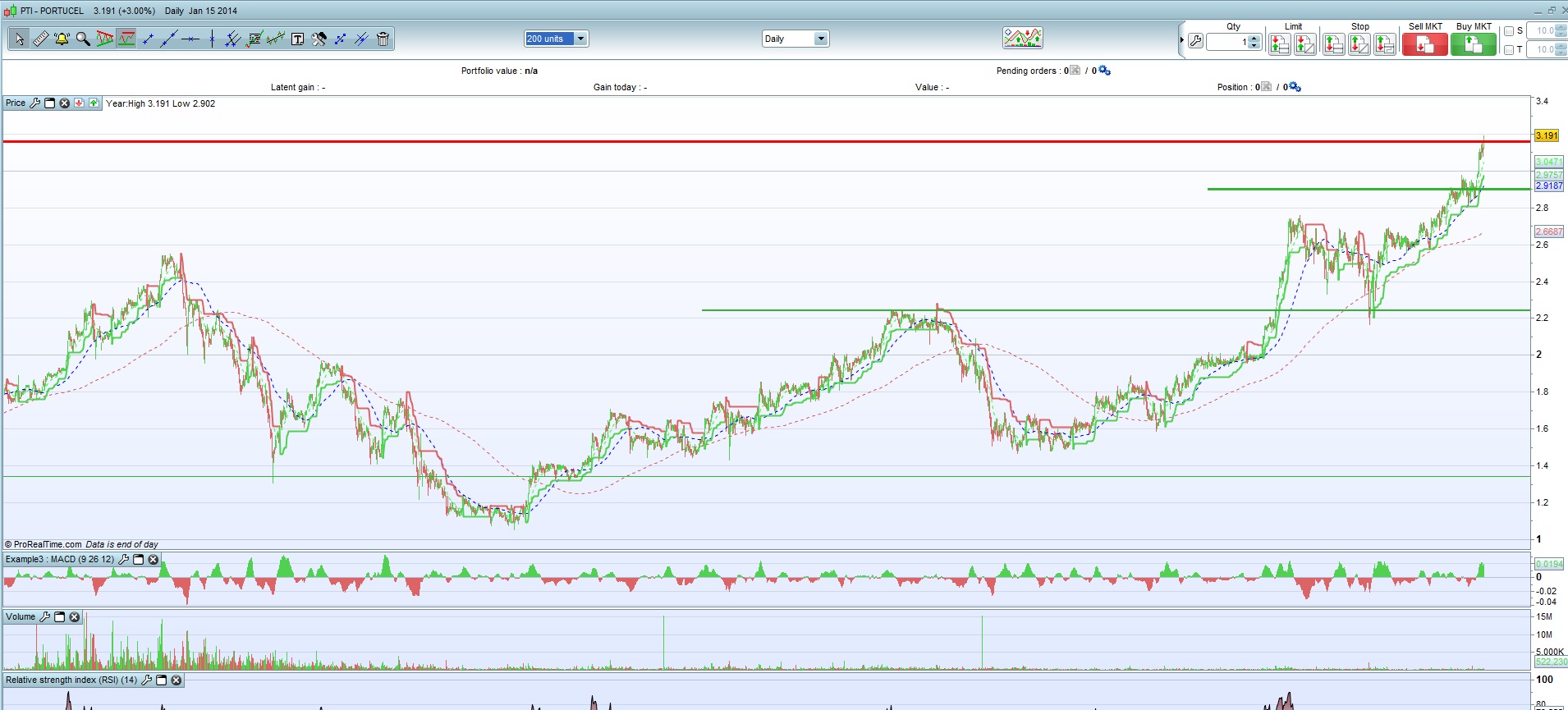 Eu tenho um gráfico que me dá uma resistência a 3,193, tendo sido atingido esse valor em 01 de Julho de 2007. Não sei se se pode considerar válida, uma vez que o espaço de tempo é bastante grande. estou a pensar vender uma parte por volta desse valor.