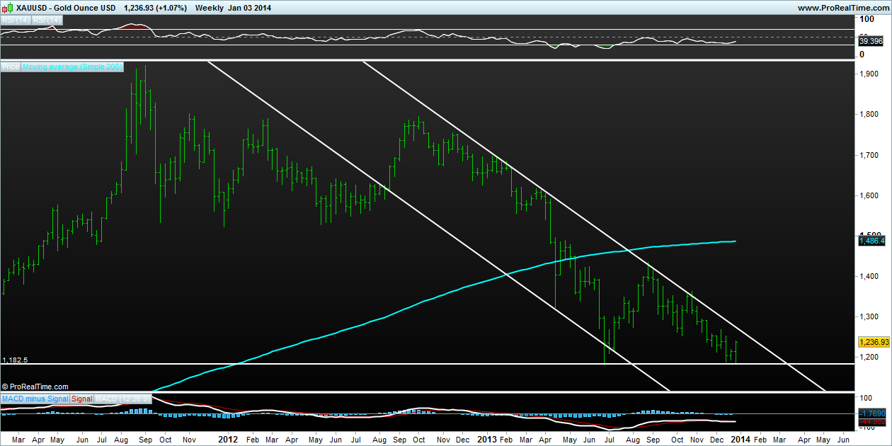 Estou exposto ao ouro através de um etf, o IAU, e o volume deste segundo toque no suporte foi fraquinho, mas se a Ltd for quebrada e a seguir tivermos um higher high e um higher low podemos ter um 2014 dourado. Mas por enquanto estou 100% urso...
