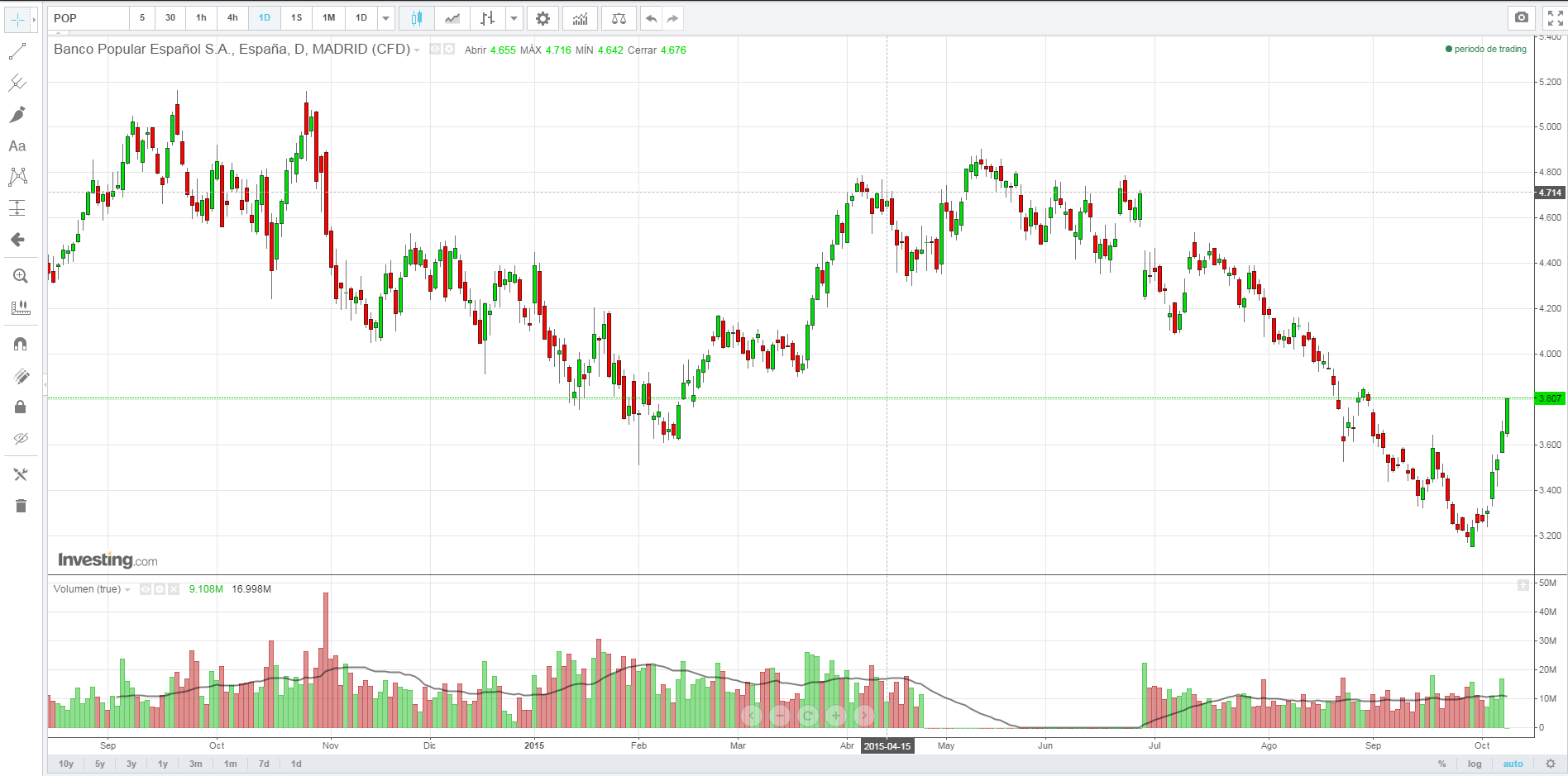AxeRiver Escreveu:Popular espanhol teve um desempenho excelente no dia de hoje. Conseguiu quebrar em alta o rectangulo que formou nos últimos meses e dar o pontapé de saída para um possível bullmarket.