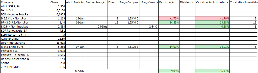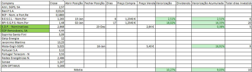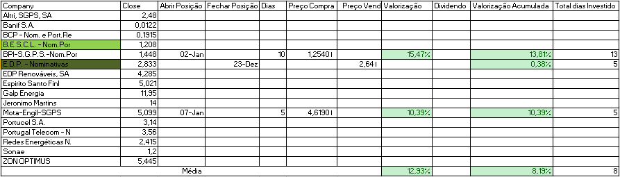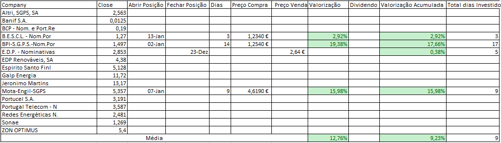 EDIT: Na tabela Mota Engil estava em aberto quando fechamos a posição na quinta-feira, como indicado nos posts anteriores.
