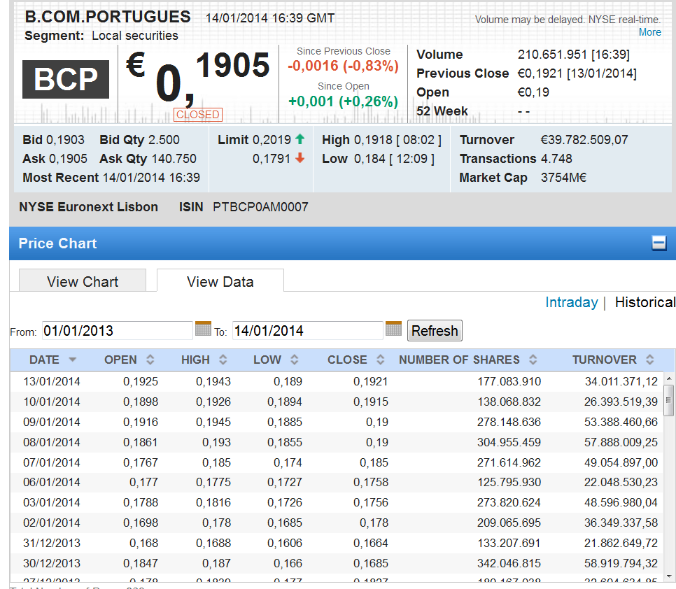 Fica o registo das cotações registadas na Euronext, para os últimos dias. Assim, não restam dúvidas!