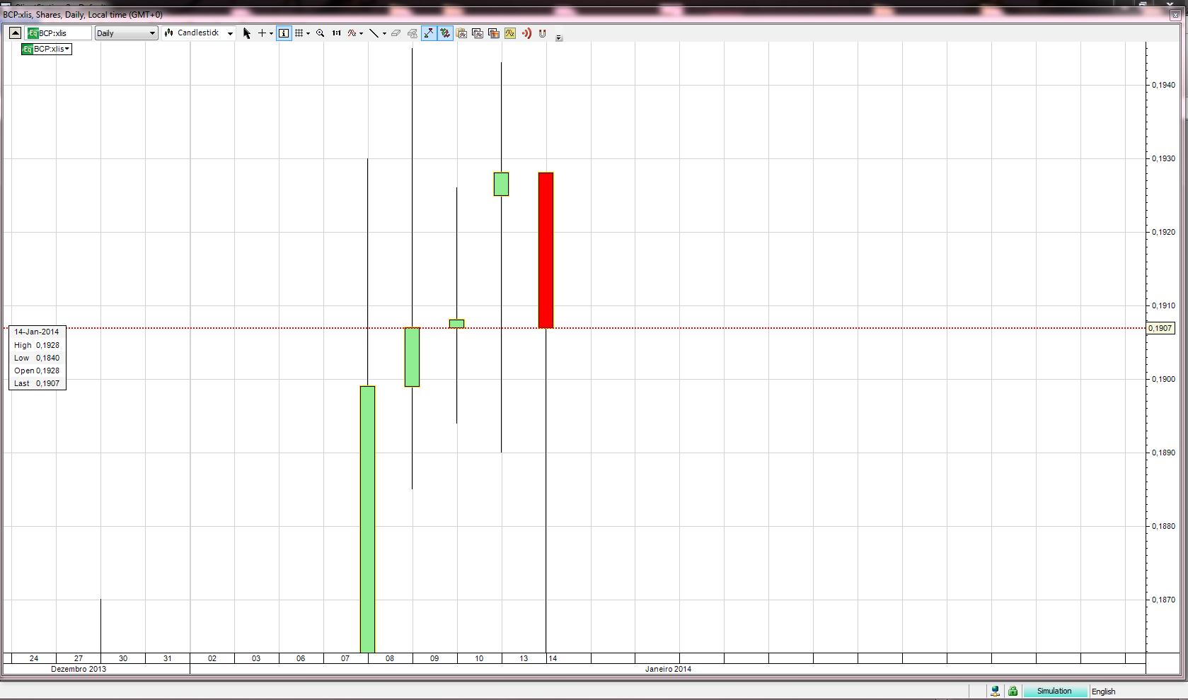 O pior é não aparecerem sequer as velas durante toda uma sessão, o que ocorre frequentemente com activos estrangeiros (mais concretamente E.U.A) e por cá com o ìndice PSI20. Nestes casos já temos que ter mais imaginação