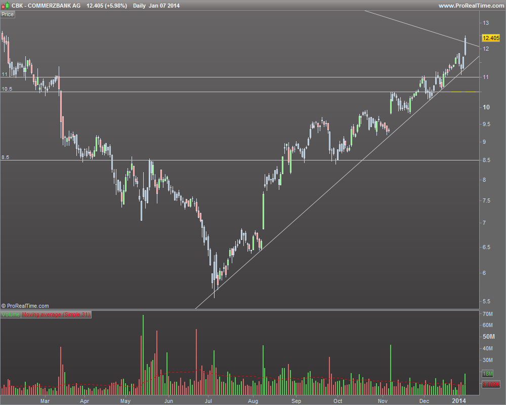 Sem alterações à composição da carteira deixo os gráficos atualizados das posições que hoje fizeram novos máximos, demonstrando assim estarem bem de saúde: EGL, SON e claro a banca - CBK, BCP e BES.