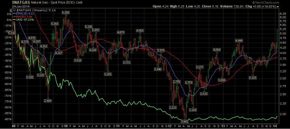 Natural Gás Vs UNG ( 5 anos e 1 ano)