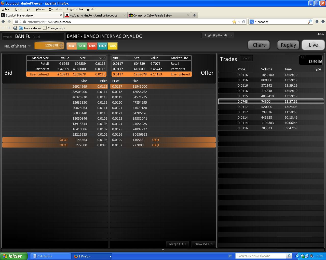 Desculpem este meu post mas alguém me consegue explicar o que se passou hoje no banif ás 12:57:52 ,acho que se passou algo de anormal pois foi executada uma ordem a 0.0743 entre duas ordens a valores muito superiores.
