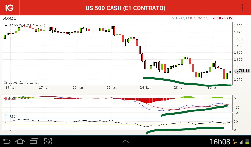 zecatreca_1 Escreveu:Existe uma div positiva no gráfico 4h. No de uma hora, ainda falta fazer uma. Portanto conto com um mínimo abaixo do de ontem, ou seja a 1769.