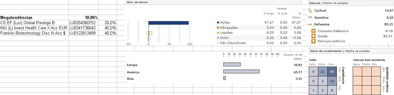 Nesta carteira equaciono ainda entrar no Pictet-Global Megatrend Selection-R EUR, bem como, individualmente, no sectores da água, agricultura, energia limpa, madeira, entre outros, sem que isso represente mais de 10% do meu património mobiliário.