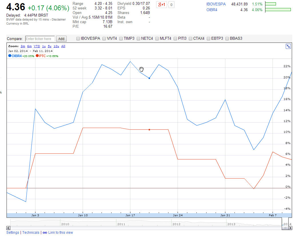 Alguém pode adiantar razões para um comportamento tão diferente sobretudo desde 7 de fevereiro, entre a OI e a PT?