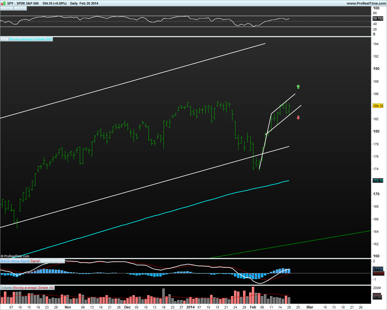 Como é óbvio as subidas não vão ser eternas no SP500 ("bull market"), mas se olharmos para trás o SP500 está perto de fazer 5 anos em "bull market" e fez recentemente máximos de sempre, em que porventura ninguém acreditava...para já a tendência primária é ascendente sem sinais de fraqueza e para quem vem com posições longas de médio/longo prazo para já está tranquilo.Agora isto depende do "timeframe" que cada um negoceia e respectiva estratégia.
