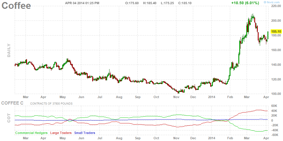 Pedro, nao sou especialista, mas pelo que leio e pelo que faz sentido, nao existe uma empresa que tenha milhoes de hectares de produção de café. Tanto quanto sei o maior "consumidor" de café é a starbucks, e que eu saiba a starbucks nao tem fazendas de café. Se pensares porque é que o café está mais caro, logo compreendes que o motivo é que possivelmente, devido á seca, vai haver menos cafe disponivel no mercado. Se isso beneficia os produtores? Duvido, porque na pratica significa que vao vender mais caro mas muito menos quantidade. Alias....os produtores de cafe devem andar desesperados da vida com a falta de chuva no brazil (principal motivo alegado para a subida) .Relativamente ao movimento acho que nunca vi nada assim tao rapido e forte.