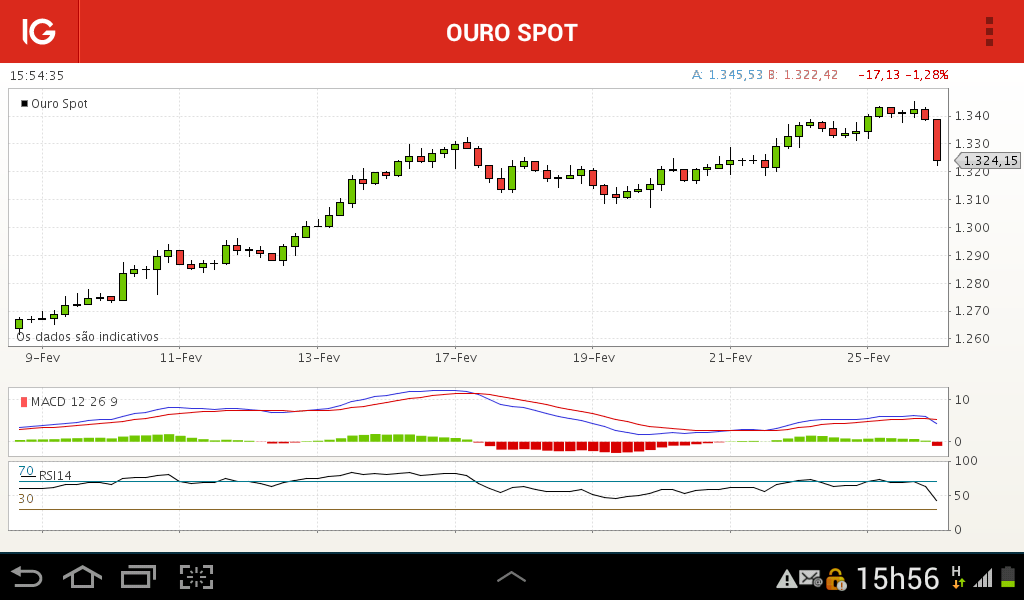 Enquanto estiver acima de 1305 penso que o ouro continua ascendente.