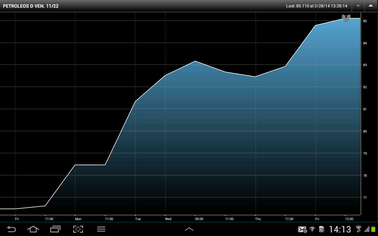 Sr_SNiper Escreveu:A crescente instabilidade Venezuela não está a agitar a cotação das obrigações dos petróleos da Venezuela, avançam hoje 0,23% a emissão de 2022