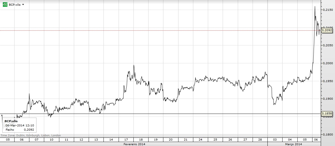 Olha o "BCPzinho" a subir 10,44% às 9:37!