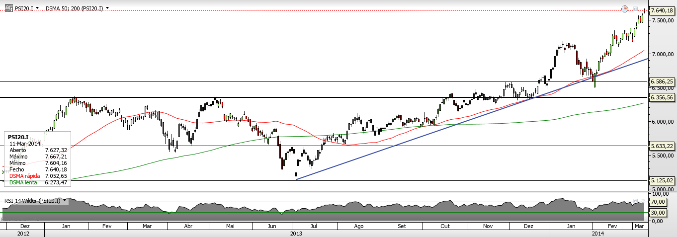 Entretanto, no PSI 20, os 8000 pontos aproximam-se vertiginosamente. O PSI 20 já está a menos de 7,5% de lá chegar.