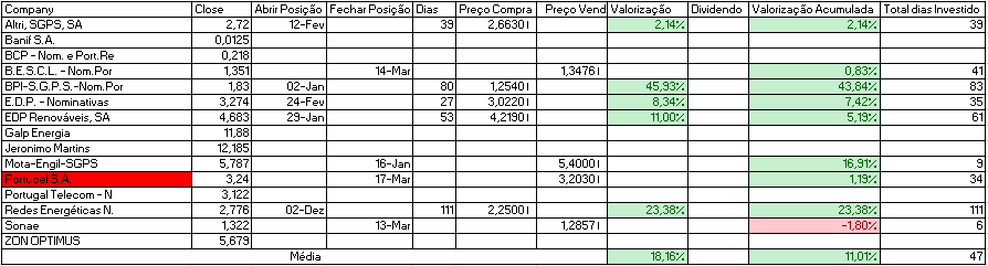 Hoje, um dia de fortes subidas desfiz-me das posições da American Express Co. e Portucel.