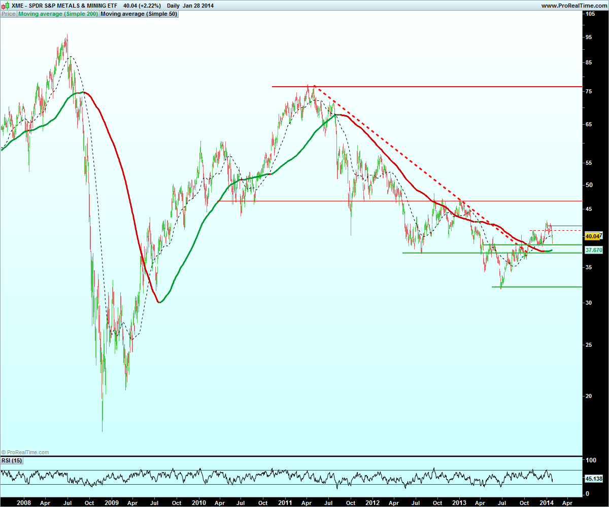 Nova posição longa no ETF XME (SPDR S&P Metals and Mining) a 40,25$ com um peso de 25% da carteira. tendo como objectivo os 45,25$ (+12%), e stop nos 37,45€ (-6%).