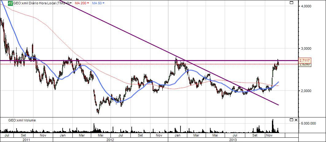 Possível breakout na GEOX. Fecho mais alto em 2 anos.