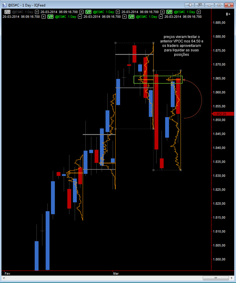 Aqui tem-se bem a ideia de que falei anteriormente como o MP dá uma segundo dimensão ao mercado, coisa impossivel de se obter com as standards candles/barras.