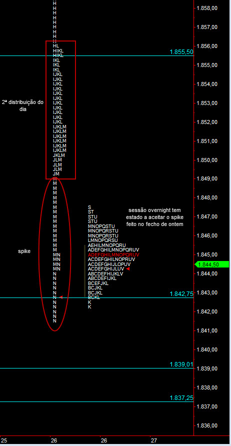 Terminamos o dia com duas areas de distribuição mais o spike no final da sessão, ultimos 45min, periodo M e N.
