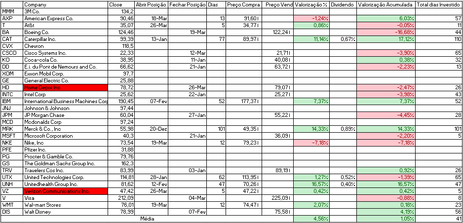 Para o ultimo dia do mês temos a indicação de venda da Home Depot e Verizon.