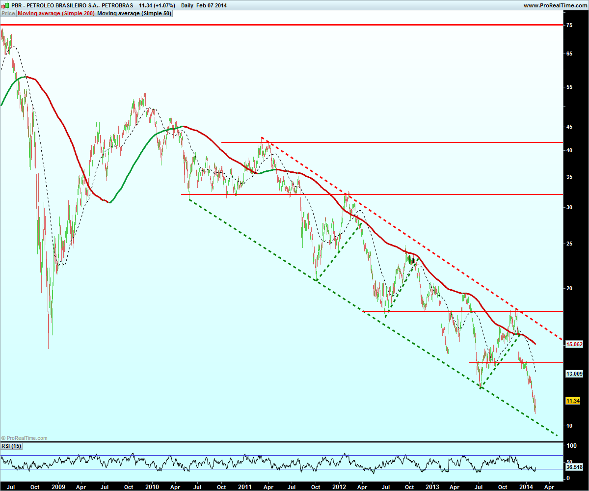 Está um gráfico perfeito! Mas também não é menos verdade que se deve passar algo com a Petrobras...uma empresa que passa de 44$ para 10,X$, sendo uma grande empresa não sugere que algo de bom esteja para vir. (Sei que as realidades não são as mesmas mas quem não se lembra das empresas do grupo X principalmente a OGX.