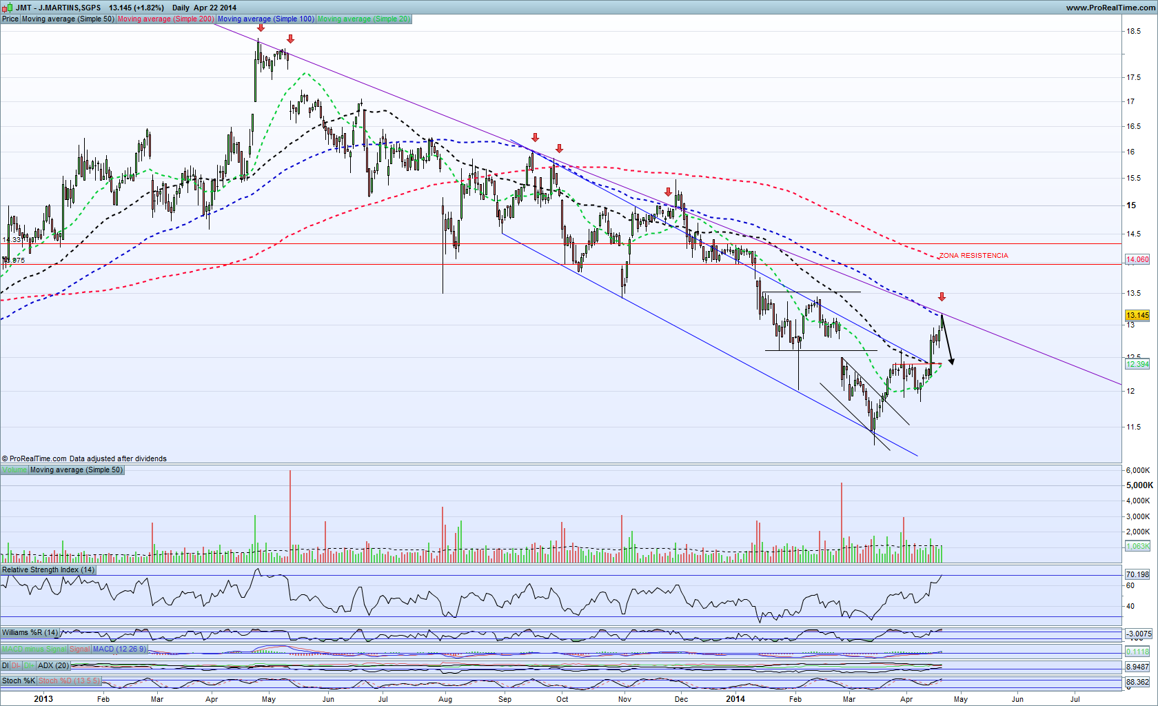 mmrmm Escreveu:5 toques em seis meses, mas nenhum desde finais de Novembro/2013, não terá a LTD perdido a sua força? Não porque a acção esteja a mudar de tendência, mas antes a aprofundá-la com uma inclinação de descida ainda mais acentuada... a ver vamos...