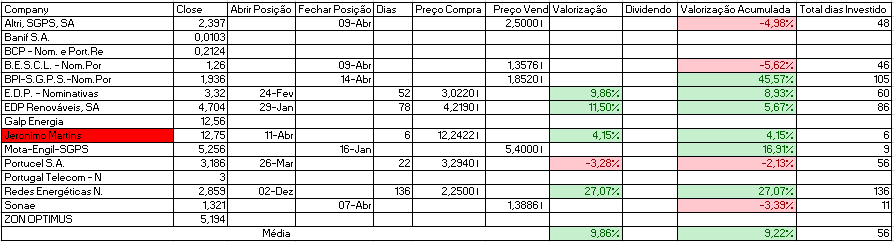 Hoje consegui contrariar a queda do PSI20 com as subidas da JMT (nada mal para primeiro dia após a compra), EDP e claro os States que hoje corrigiram/recuperam das quedas recentes.