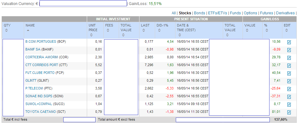 Detenho esta carteira de títulos que começou a ser recheada desde a oferta publica de venda dos CTT.