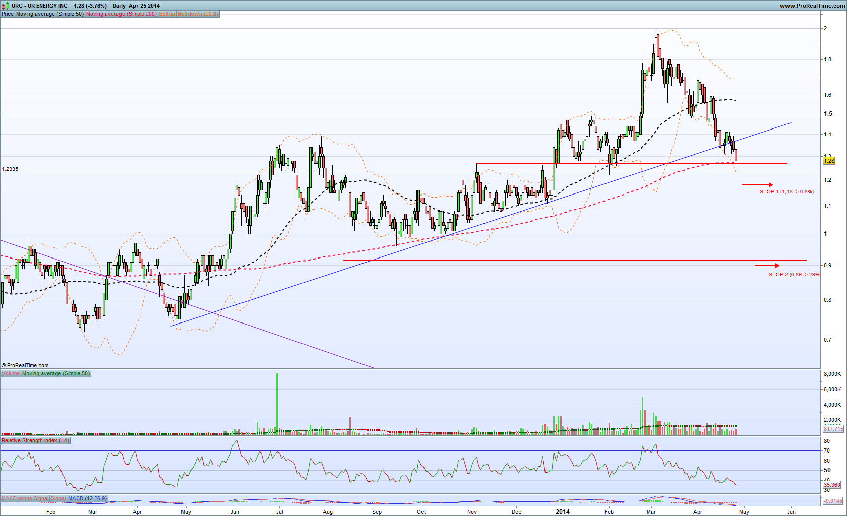 Como meter um stop a 0.89$ está completamente fora da minha perspectiva máxima de drawdown, a única hipótese para mim seria o primeiro stop a 1,18$.
