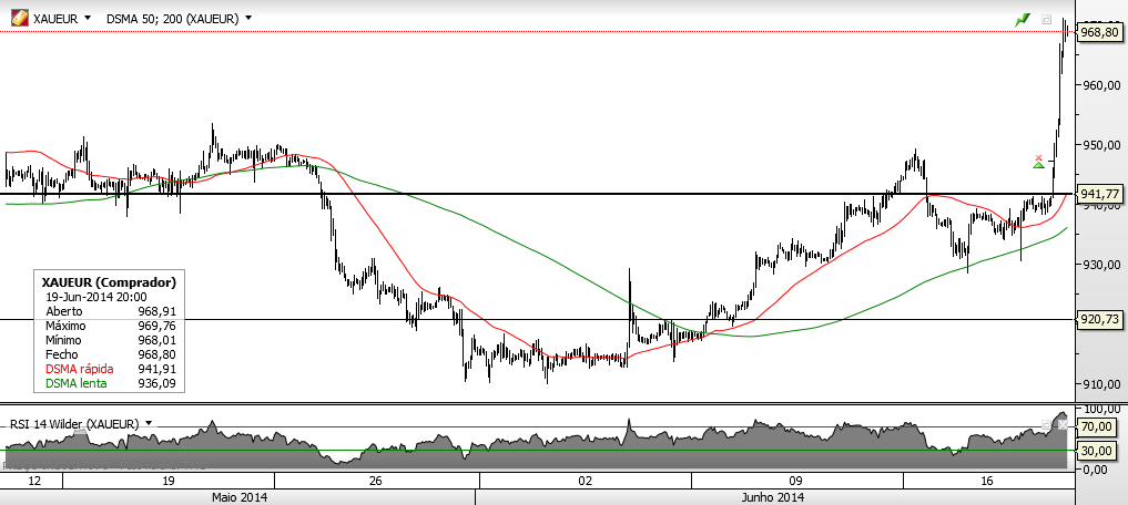 Tendo em conta, que o máximo de Março é na zona dos 1000,00 e que até lá não parece haver resistências, estou convencido que o ouro vai pelo menos testar o anterior máximo - entre os 990,00 e os 1000,00.