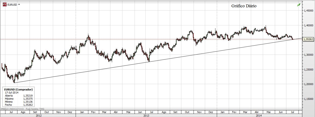 Caso a ação do preço para o EURUSD sofra um breakout abaixo de 1.3590 é recomendado o seguinte trade: