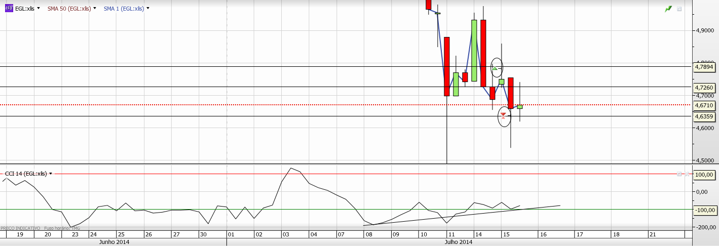 No caso da última compra na Mota, não teria sido um bom ponto de entrada - longo, no valor em que saiu do seu trade com perda? Isto olhando para as velas e seu comportamento, ou seja, na penúltima vela(negativa), podemos verificar que o preço retraiu rejeitando os valores mais baixos, sendo o preço da cotação +- pelos 4,65, tendo a última vela demonstrado contudo alguma indecisão... talvez a decisão mais acertada seria esperar pela próxima vela ou então arriscar uma entrada por estes valores uma vez que perece ser um valor consensual com tendência de subida... será este o raciocínio correto?