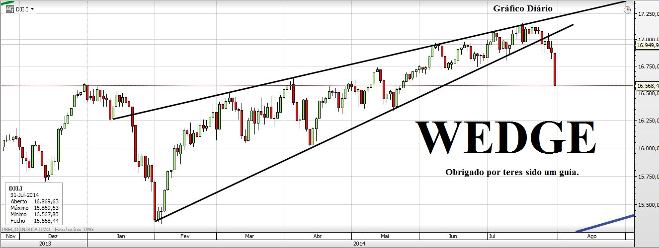O dow é neste momento o indice americano mais fragil. Tens indices que ainda estão muito fortes como por exempo o nas que não quer dar sinais, pelo menos até ao momento, de querer ceder. Já o sp parece querer escacar a lta de curto prazo mas pra já ainda é cedo, a não ser que a tia presidente agora as 19h de uma ajudinha 8-)