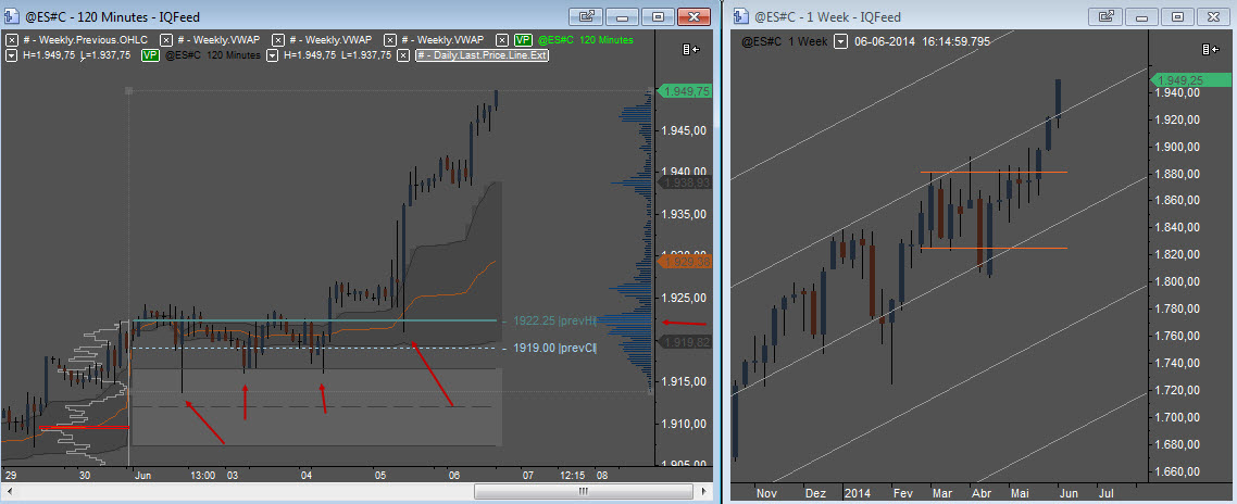 Um possivel problema será o facto de o VPOC do mês passado ter ficado nos 1868. O ES subiu dos 1868 aos 1920's sem o VPOC ter subido. Um claro sinal de fraqueza, buyers claramente a não participar em grande força à medida que os preços iam subindo.