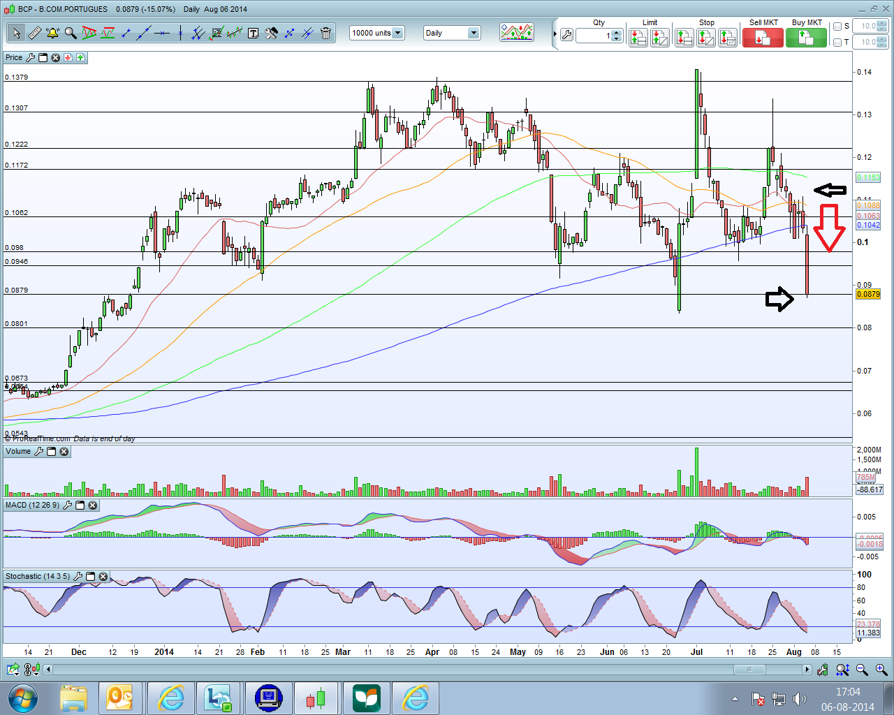 No dia em que o BCP bateu nos 14 cêntimos, já depois do ajuste devido ao AC escrevi aqui que achava o BCP esticado em relação ao BPI. Em relação ao BES não me pronunciava devido às incógnitas que envolviam o banco, longe de mim, nessa altura, imaginava o desfecho que estava próximo para este banco.