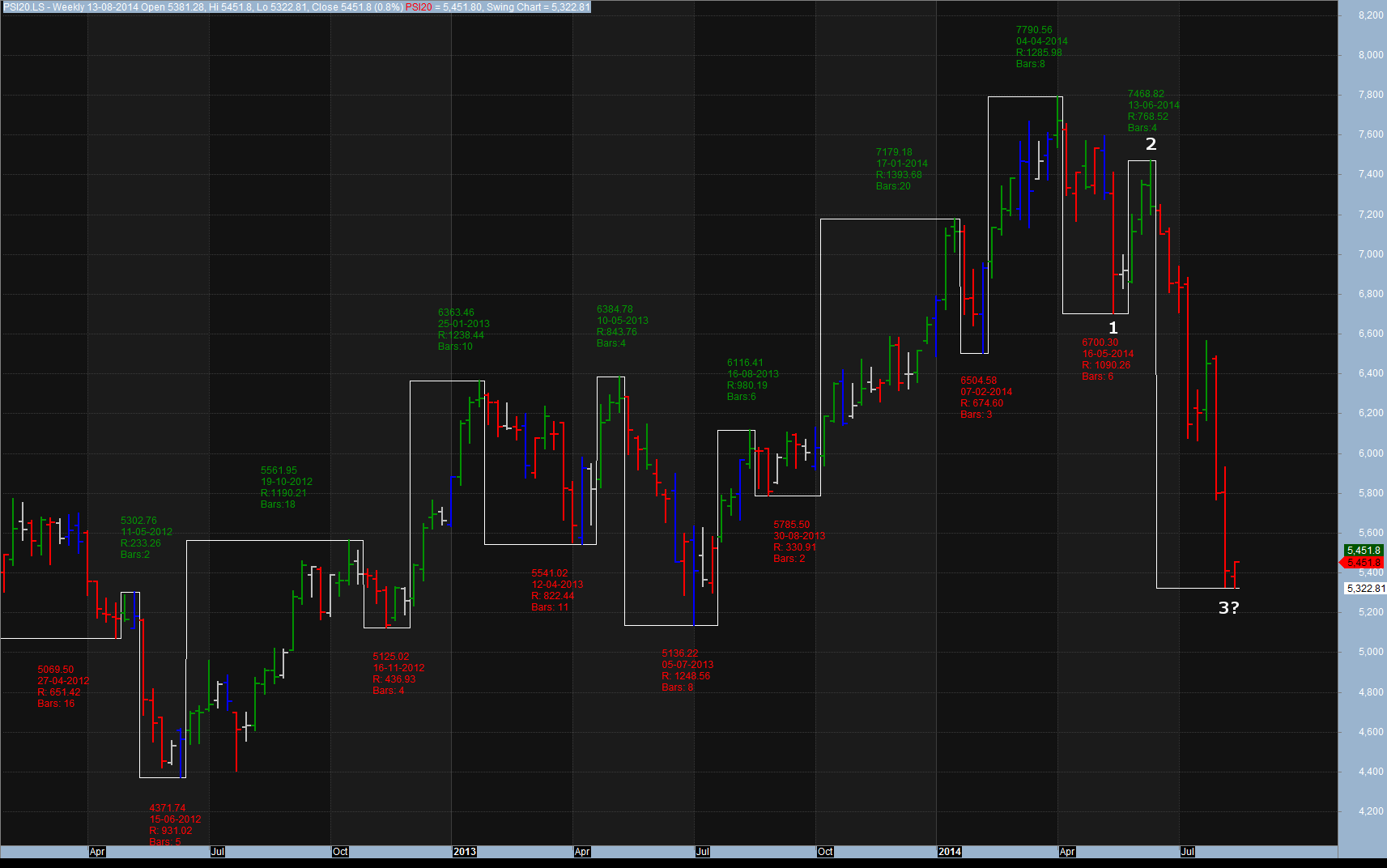 quando é que se pode assumir o fim da w3 (ou de uma qualquer onda)? É que, se bem me recordo do que há tempos lia, cada onda pode ter subondas e aquilo que poderá ser por exemplo o início da w4 mais não será do que uma fase de consolidação no decurso da própria w3. Por outras palavras, quando é que se pode falar em w4 em vez de uma mera consolidação no decurso da w3 (que nada obstará a que seja em ziguezague)? Recorrer-se-á às extensões de fibo para ajudar na determinação?