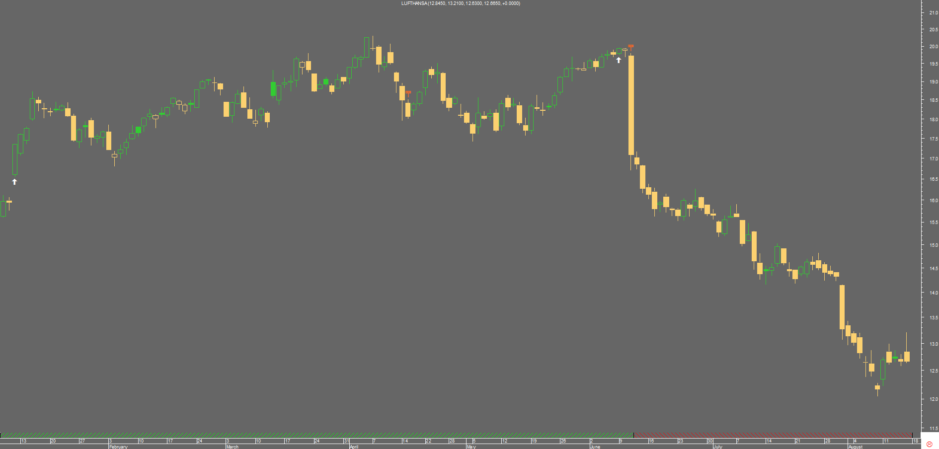 o último gráfico ilustra bem um contra dos stops mentais (SM): a 11 de junho a acção caiu dramaticamente; quem tivesse um stop por perto, talvez não perdesse tanto quanto quem apenas usasse SM e apenas vendesse na abertura do dia seguinte