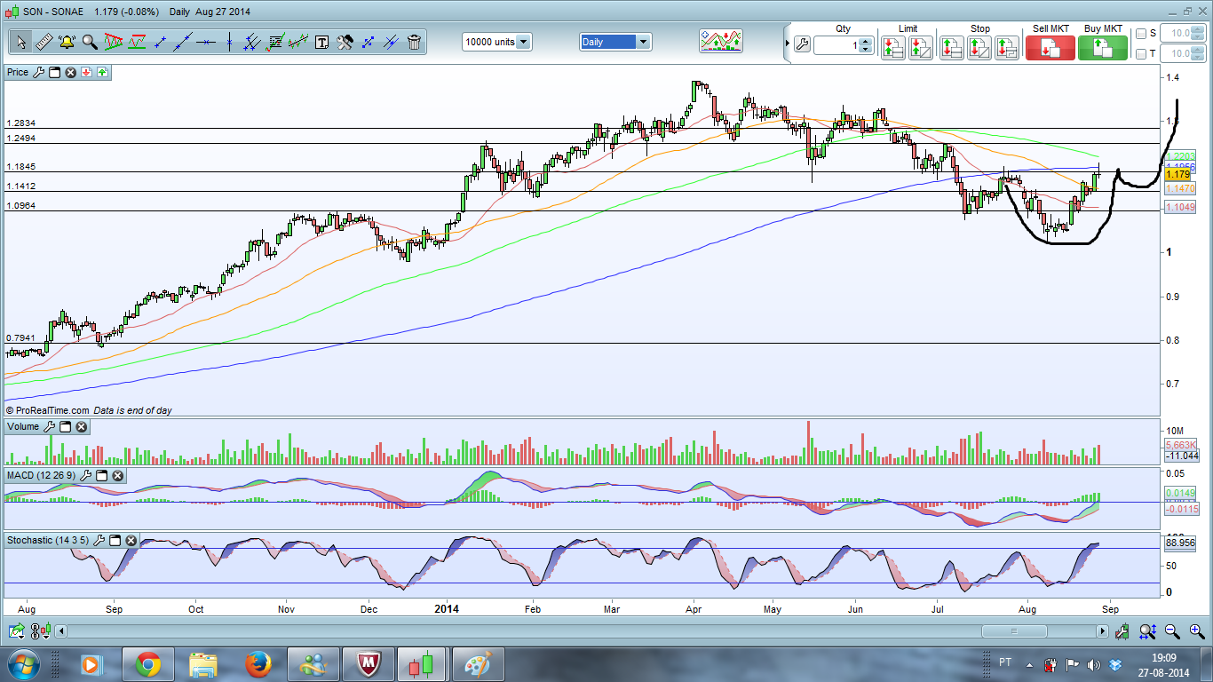 Muito Interessante o fecho de hoje da SONAE SGPS. Com algum volume (5.1XXXXX) de acções negociadas. Vamos ver se amanhã confirma o rompimento da resistência a 1,14/1,15€ e a ser uma realidade tem caminho aberto até 1,248€, penso eu de que.