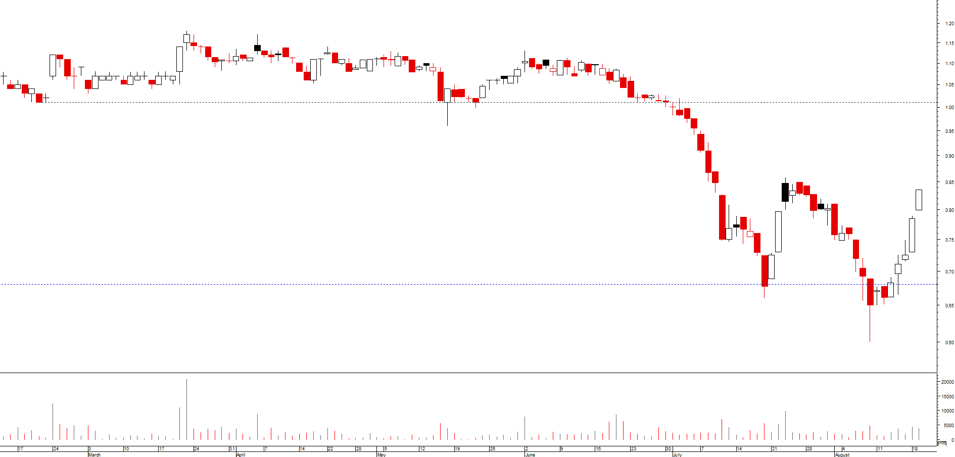 Foi pena...tava ali na cara...mas nao é algo que acompanhe...mas vou ficar a ver...até aos 0,86€ pode haver espaço...quebrar esses 0,86€....xi leva aquilo até ao tunel do marao...mas caso va aos 0,86€ pode voltar para os 0,75€
