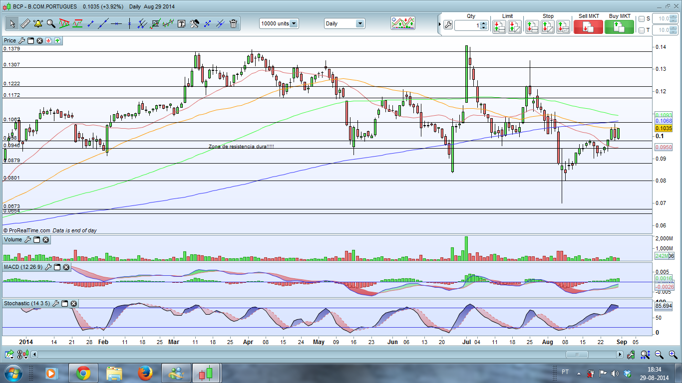 Os 0,098€ continuaram a servir de suporte...foi mto bom...e se nao acontecer nada durante o fds...segunda ou terça podem ser dias mto interessantes (2feira é feriado na terra do Obama-geralmente os volumes sao mais baixos)