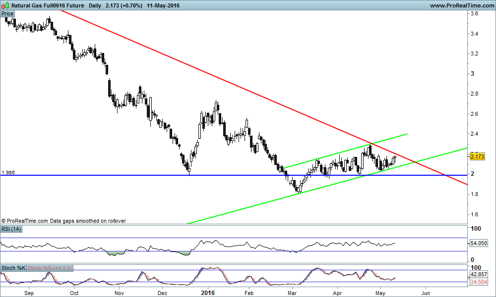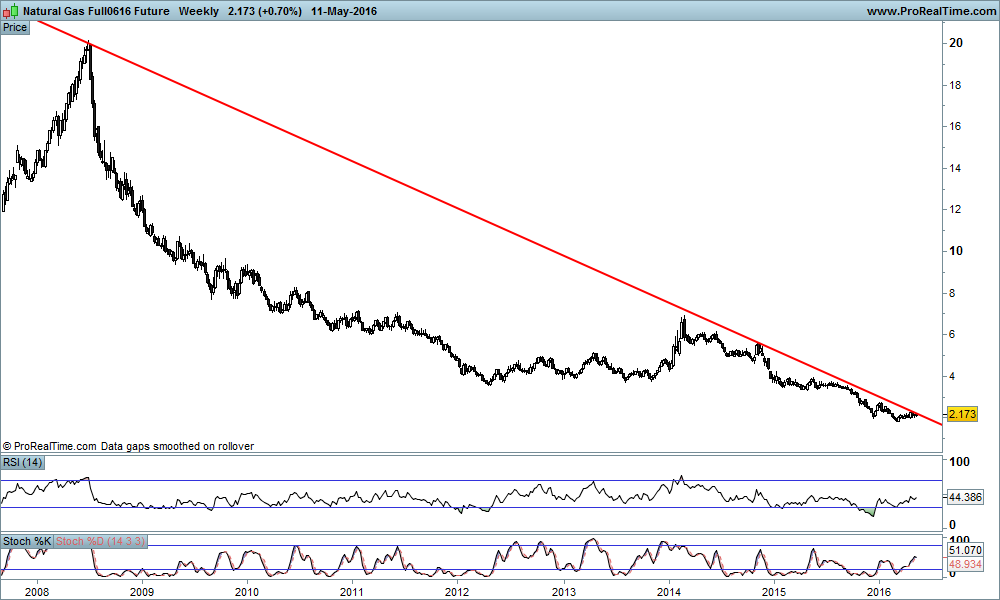 Gas Natural num canal ascendente a aproximar-se de uma LTD que vem desde os máximos de 2008, zona interessante.