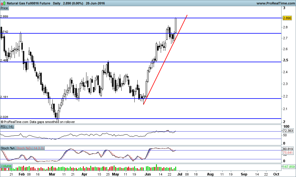 E lá foi o Natural Gas. Não posso colocar gráficos de momento mas encontra-se em zona de resistência entre os 2,9/3 e indicadores a demonstrar sobrecompra, está na altura de espetar uns ferrinhos