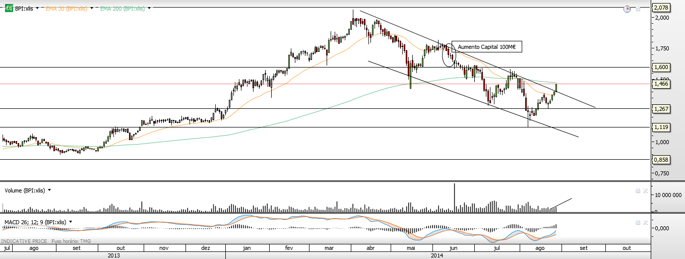 Bolsa é tanto matemática quanto psicologia. No médio prazo todos os ventos correm a favor do BPI inclusivé a eliminação dum concorrente peso como o BES. No longo prazo infelizmente a economia portuguesa continua rastejante e cada vez pior coisa que limitará o crescimento do BPI