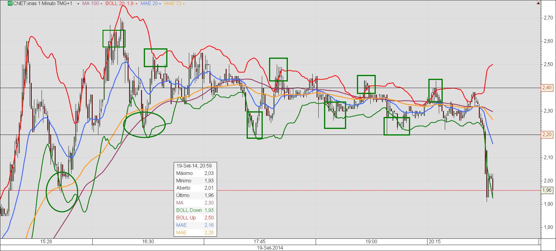 Bolinger Bands, medias moveis e o tempo gráfico de 1 minuto. Day trader.