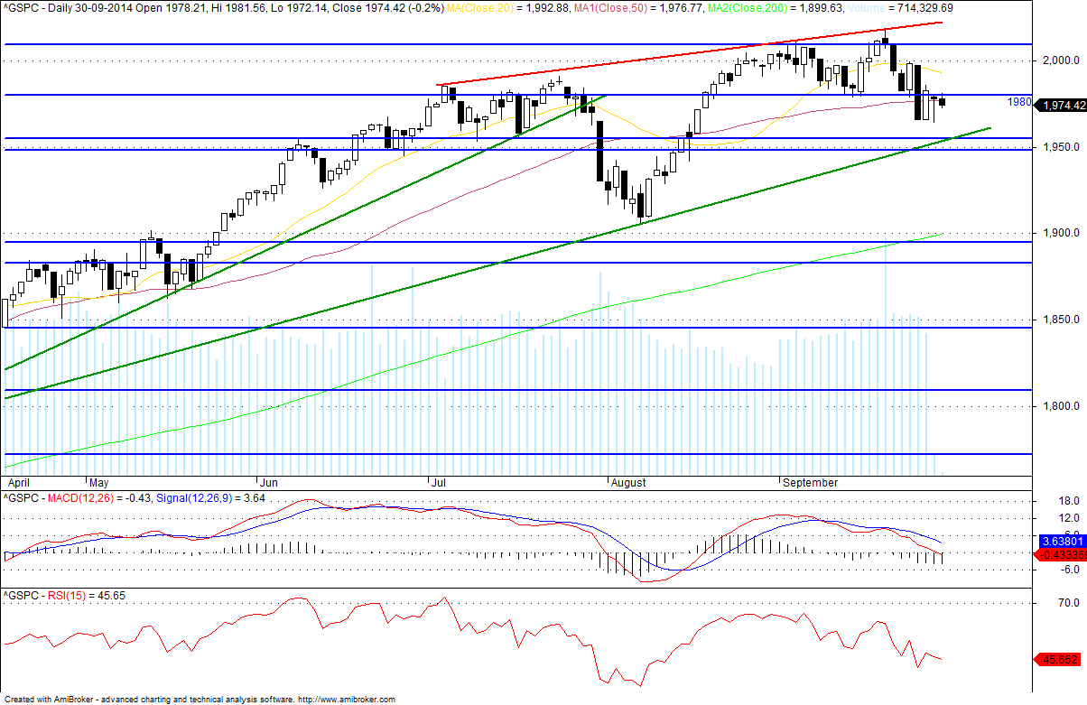 Para Outubro, o S&P não está famoso. De boleia dos Meremer (mercados emergentes), o S&P corre o risco de continuar e de tonificar a correcção já encetada (o que tem apenas a vantagem de arejar o mercado para um final de ano virado bem a norte).