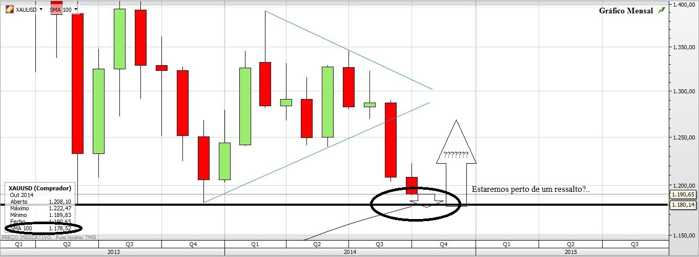 Na minha modesta opinião o Ouro vai agora lateralizar por uns tempos ou subir ligeiramente antes de retomar novamente o sentido descendente. Estou fora do Ouro e sem nenhum activo financeiro.