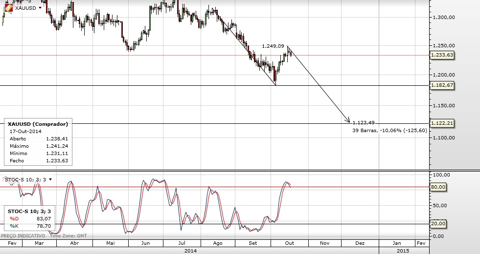 Na minha modesta opinião o Ouro vai agora lateralizar por uns tempos ou subir ligeiramente antes de retomar novamente o sentido descendente. Estou fora do Ouro e sem nenhum activo financeiro.