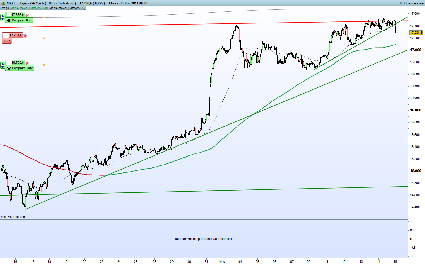 Abri à 20 minutos nova posição short no NI225 com o preço referido na carteira e com stops respectivamente em 17260/17460.