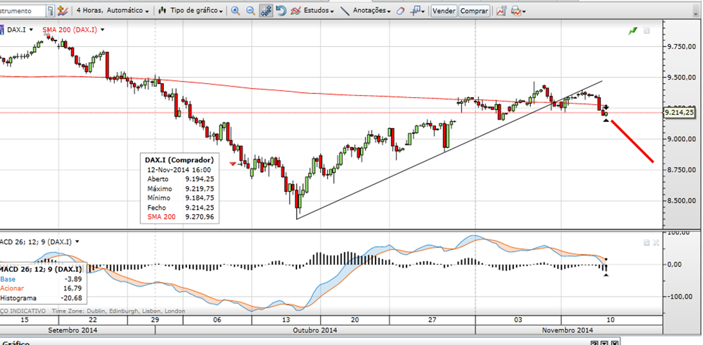 - o dax , no diario, ainda nao deu sinal de inversão de tendencia, apenas corrigiu hoje. Se amanha fizer outra vela destas, e o spx for atrás, entao poderemos estar na presença de mais uma correção saudavel antes do rally do Natal.