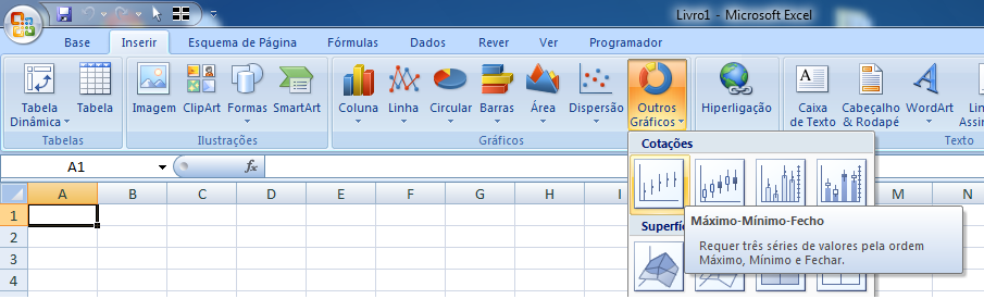 queria fazer uns gráficos no meu excel... os dados seriam fecho, e o máximo e minimo diario... nao consigo fazer um gráfico com estes dados...